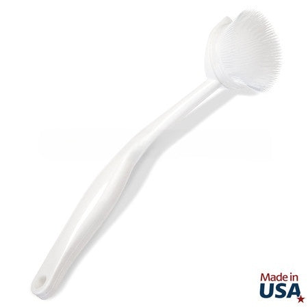 This versatile dish brush is ideal for pre-rinsing dishes, pots, and pans before placing them in the dishwasher, or for washing sinks and hand-washing dishes. Safe for non-stick pans, its durable bristles won’t scratch surfaces, while the built-in scraper on the back tackles stubborn, stuck-on food that bristles alone can’t remove. The ergonomic, contoured grip handle makes it comfortable and easy to maneuver, ensuring efficient cleaning every time.
