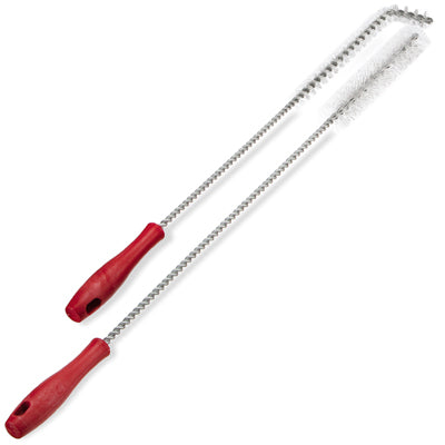 Each brush is equipped with a polypropylene grip handle that stays cool during use, with a red handle for easy identification of high-temperature applications. The hang-up hole in the handle ensures easy storage when not in use.