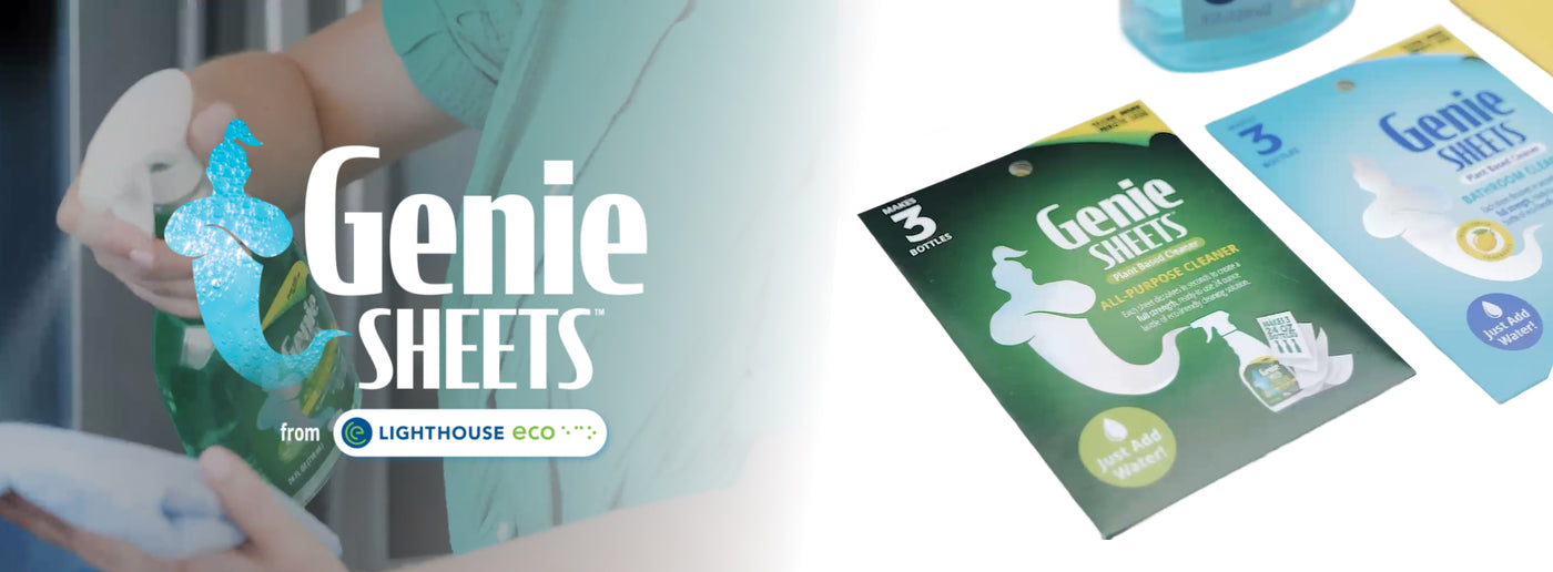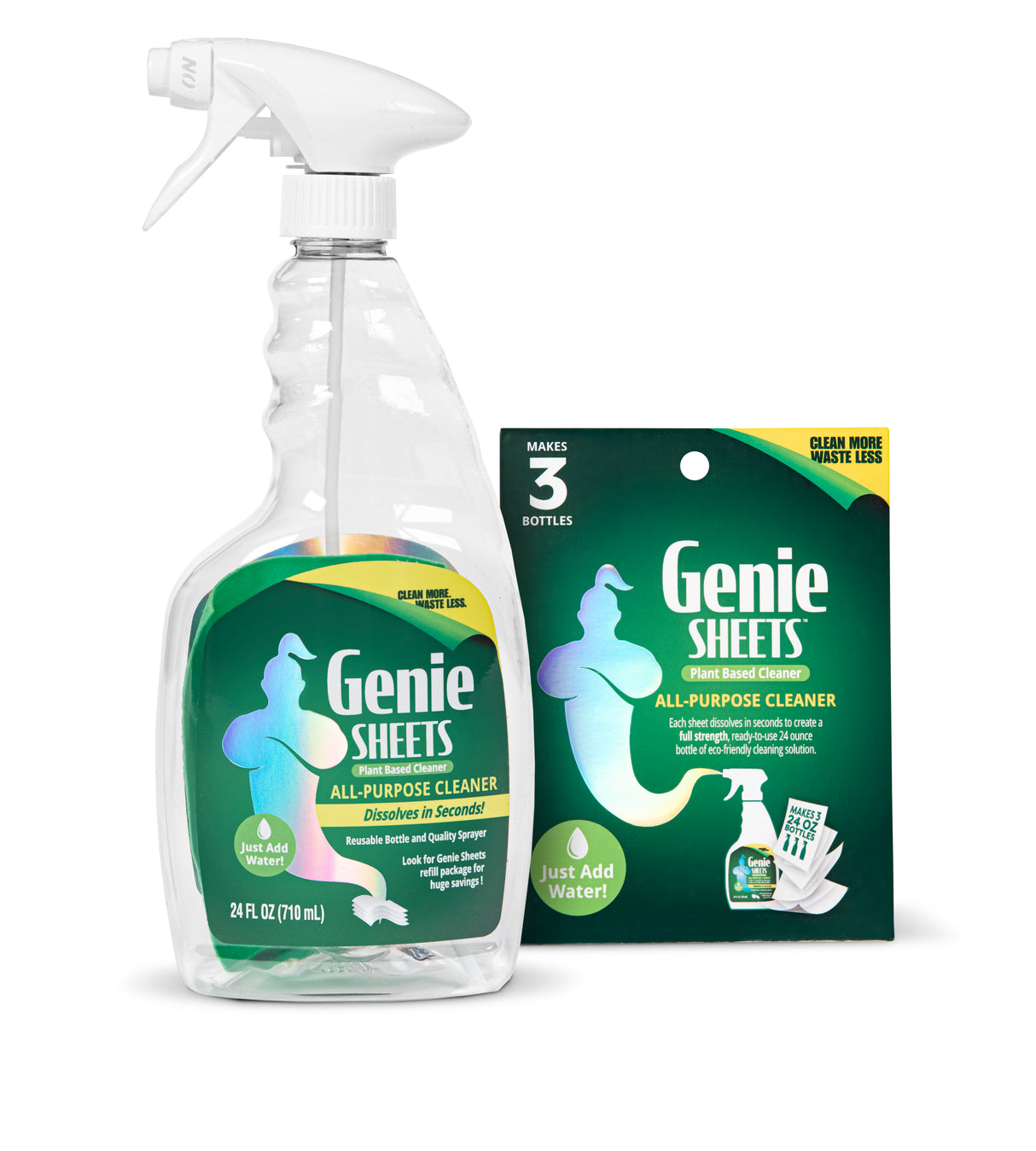 Genie Sheets are USDA certified biobased dissolvable cleaning sheets. Each sheet is formulated to turn into a full-strength all-purpose spray cleaner when added to water. Designed for use on all hard surface in your kitchen.