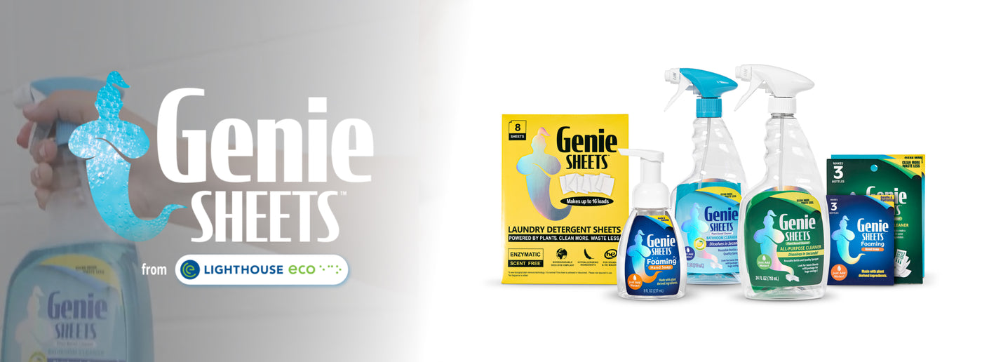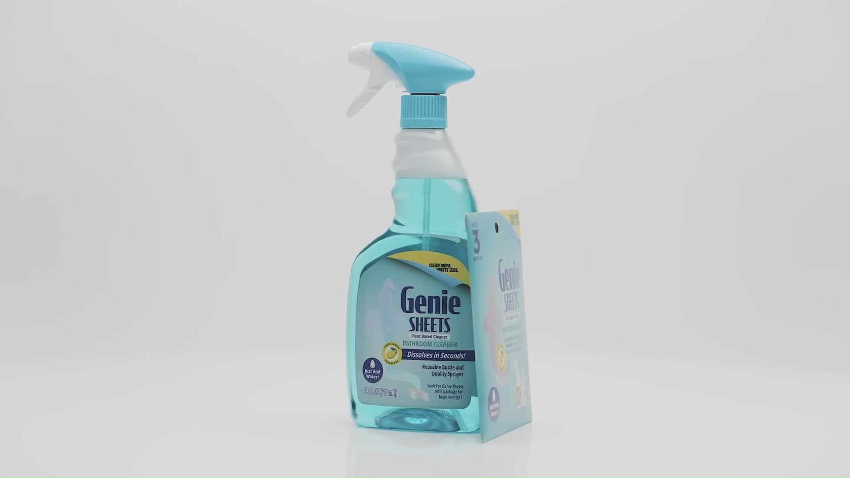 Genie Sheets are USDA certified biobased dissolvable cleaning sheets. Each sheet turns into a full-strength bathroom cleaner when added to water. Designed to tackle soap scum, hard water stains, and grime.