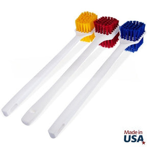 Our Double-Sided Scrub Brush offers versatile cleaning power with one side angled for precise scrubbing action. The lightweight, polypropylene handle is resistant to mildew, rot, and bacteria, making it ideal for hygienic applications. Available in both 9" and 20" lengths, this scrub brush is perfect for a wide range of cleaning tasks in food processing, industrial, or household settings. With HACCP food hygienic colors and being 100% recyclable, this scrub brush is both practical and environmentally friendly.