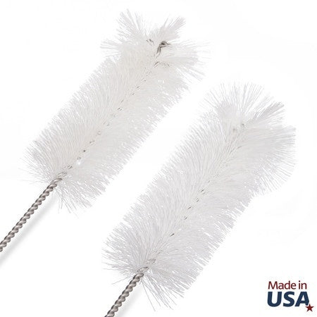 Our Bottle, Cylinder, and Jar Cleaning Brush is expertly crafted with white polyester twisted in stainless steel wire, ensuring effective cleaning for bottles, cylinders, jars, and large test tubes. The dense radial tip is designed to thoroughly clean the bottom while protecting delicate glassware from scratches. Available in a variety of diameters and lengths, this brush is ideal for thorough sanitation in laboratory and industrial settings. Made with FDA and USDA approved materials and proudly made in the USA.