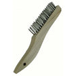 A budget-friendly 0.012" stainless steel wire brush with a contoured hardwood shoe handle for a comfortable grip. Ideal for cleaning abrasion-resistant materials, rust removal, and surface prep. Designed with a less dense wire fill for a more economical price.