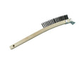 The 3-Row Wood Long Handle Scratch Brush with Scraper features tempered carbon steel bristles for aggressive cleaning and surface prep, along with a built-in scraper for removing stubborn debris. The long, slightly curved hardwood handle provides extended reach and control, making it ideal for heavy-duty industrial and workshop use.