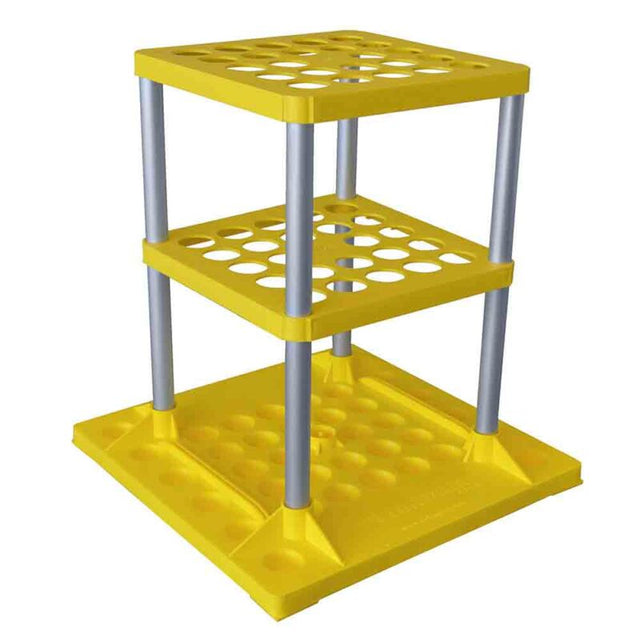 - Sturdy, lightweight tool storage stand requires minimal floor space