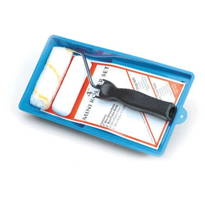 - Includes: 4" plastic tray, 4" mini frame, 4" mini roller cover (5/8" nap), and 4" mini roller cover (1/2" nap)