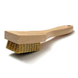 The 5 x 9 Row Brass Bristle Scratch Brush is a heavy-duty utility brush, designed for roughing, cleaning, and surface prep. Featuring 0.006" brass bristles and a shaped wooden handle for a secure grip, this brush provides effective scrubbing power while being gentle on softer metals.