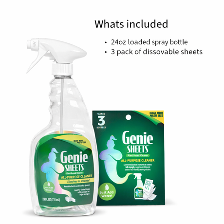 Genie Sheets quickly turn into a powerful cleaning solution by just adding water.